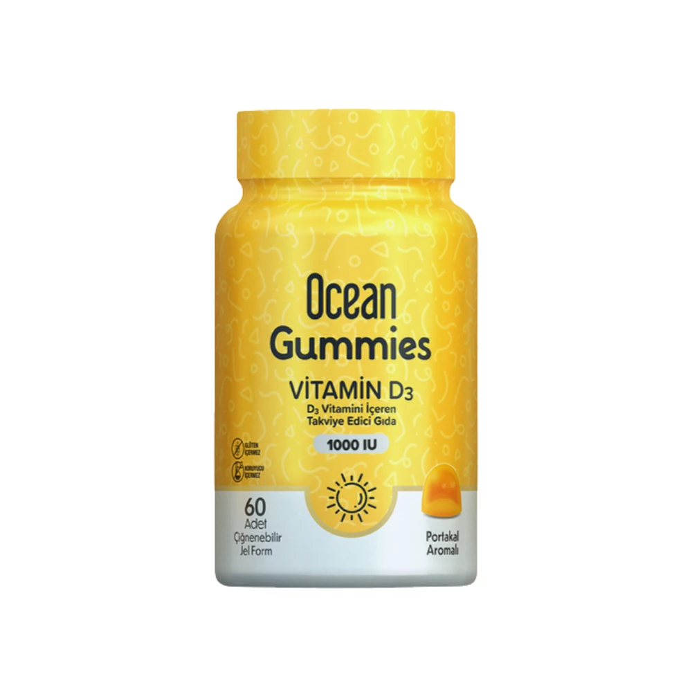 Ocean Gummies Vitamin D3 1000IU Portakal Aromalı Gıda Takviyesi 60+60 Avantajlı Paket